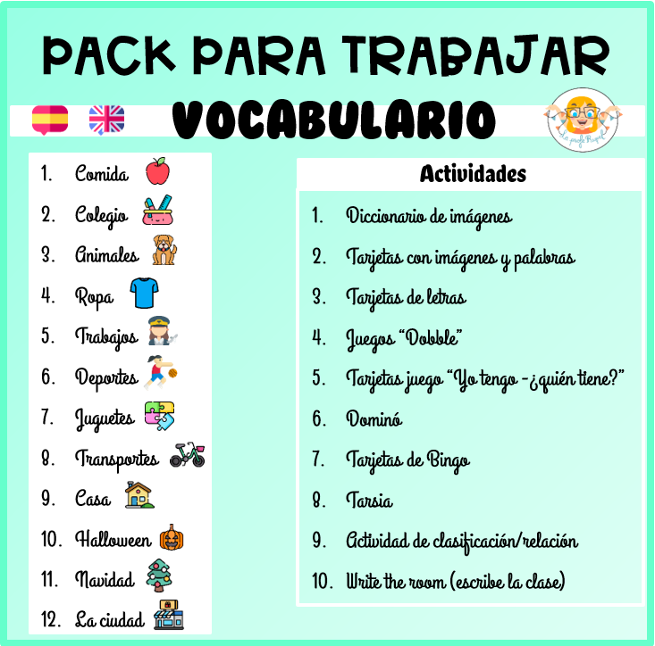 Packs vocabulario completos INGLÉS y ESPAÑOL